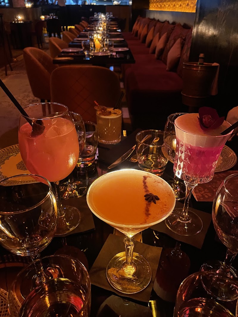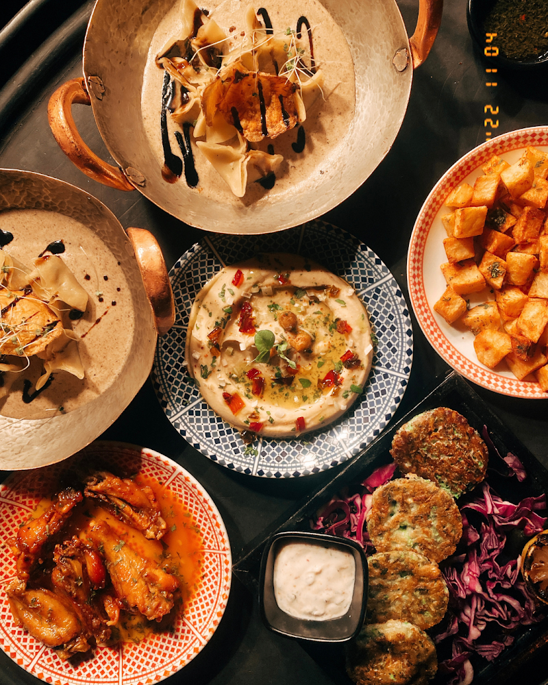 مطعم آسيوي أنيق مع شرفة فخمة وبار في الطابق الوسطي يقدّم المأكولات المغربية والشيشة